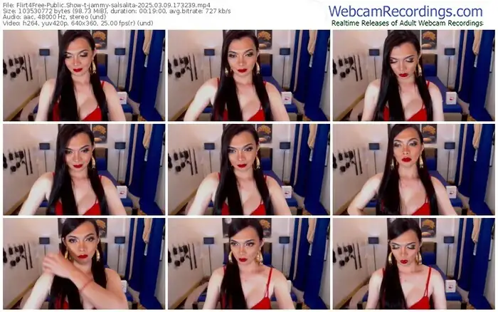 There are a total of 951 recordings (344 hours) of jammy-salsalita from Flirt4Free available below.