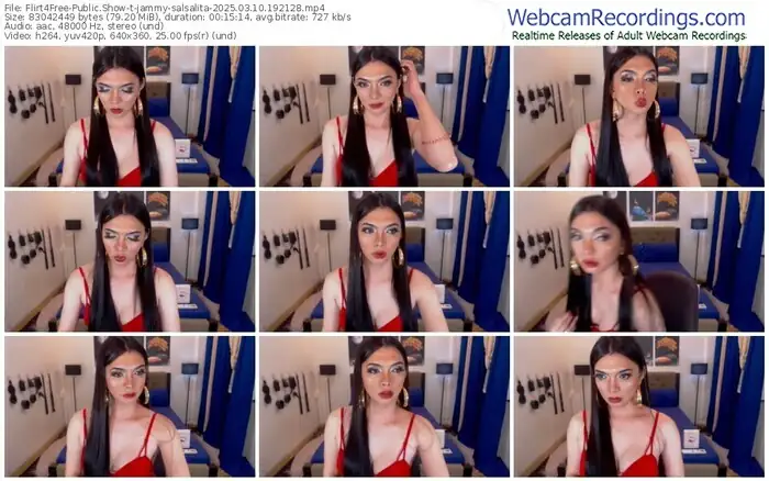 There are a total of 951 recordings (344 hours) of jammy-salsalita from Flirt4Free available below.