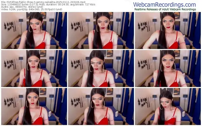 There are a total of 951 recordings (344 hours) of jammy-salsalita from Flirt4Free available below.
