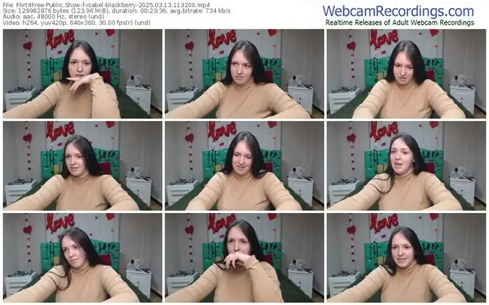 There are a total of 925 recordings (414 hours) of isabel-blackberry from Flirt4Free available below.
