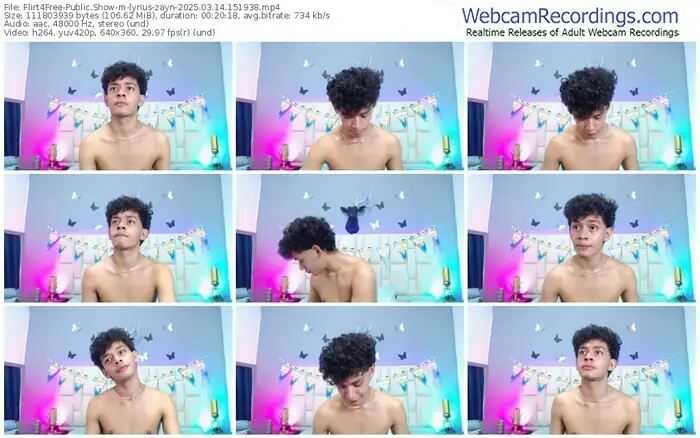 There are a total of 1,018 recordings (732 hours) of lyrius-zayn from Flirt4Free available below.