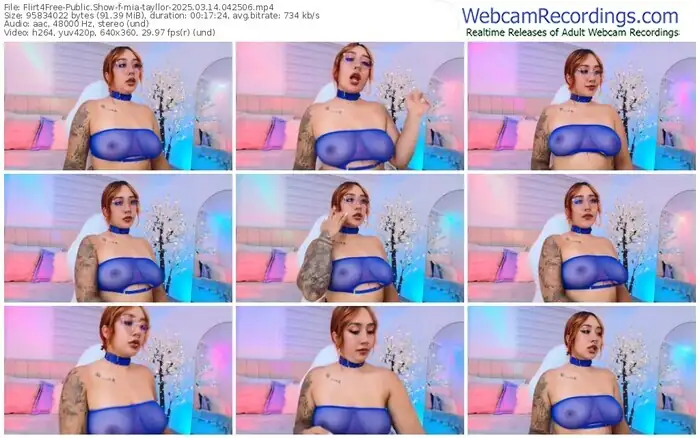 There are a total of 547 recordings (223 hours) of mia-tayllor from Flirt4Free available below.
