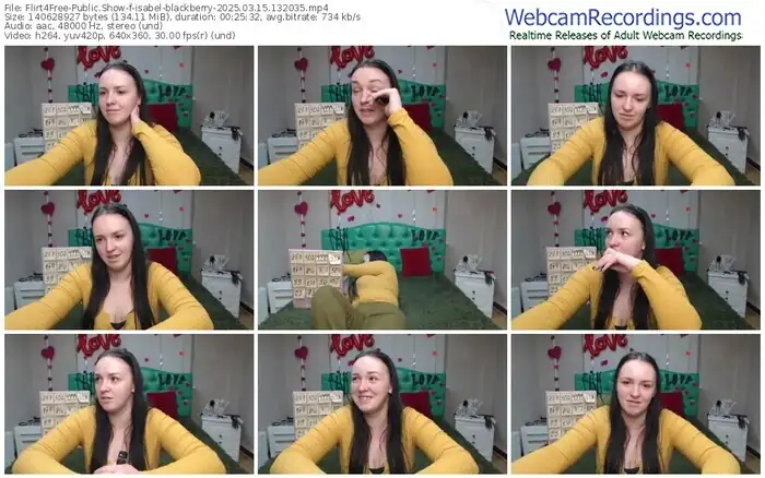There are a total of 925 recordings (414 hours) of isabel-blackberry from Flirt4Free available below.