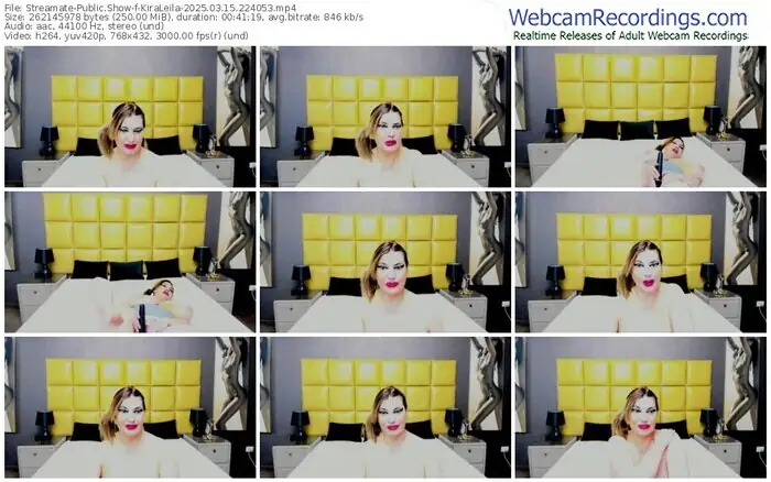 There are a total of 3,706 recordings (1,266 hours) of KiraLeila from Streamate and Stripchat available below.