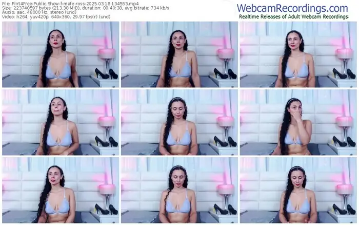 There are a total of 3,089 recordings (1,936 hours) of mafe-ross from Flirt4Free available below.