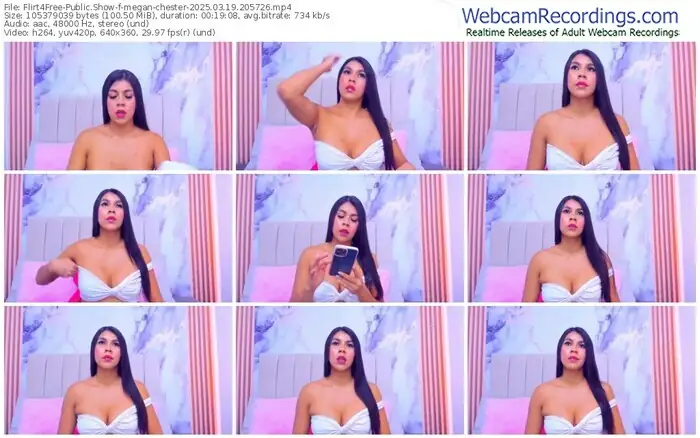 There are a total of 3,908 recordings (1,246 hours) of megan-chester from Flirt4Free available below.