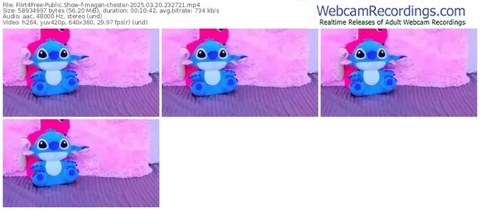 There are a total of 3,908 recordings (1,246 hours) of megan-chester from Flirt4Free available below.