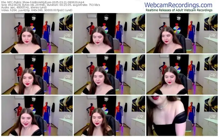 There are a total of 1,998 recordings (690 hours) of AdmireMyEyes from MyFreeCams available below.