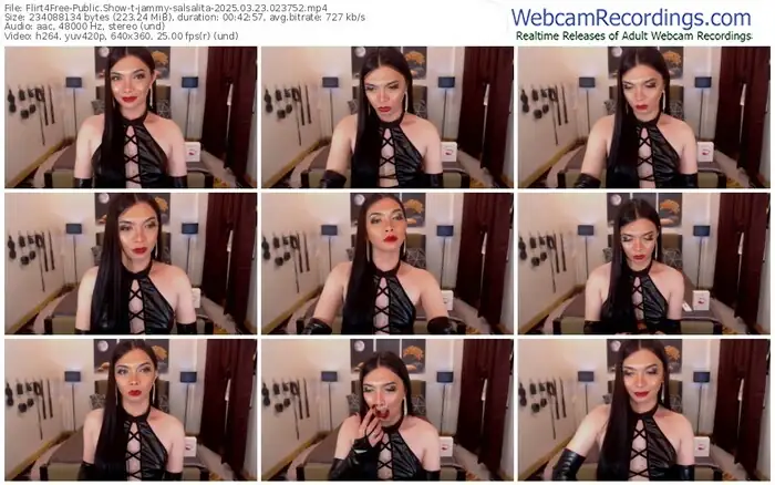 There are a total of 1,013 recordings (364 hours) of jammy-salsalita from Flirt4Free available below.