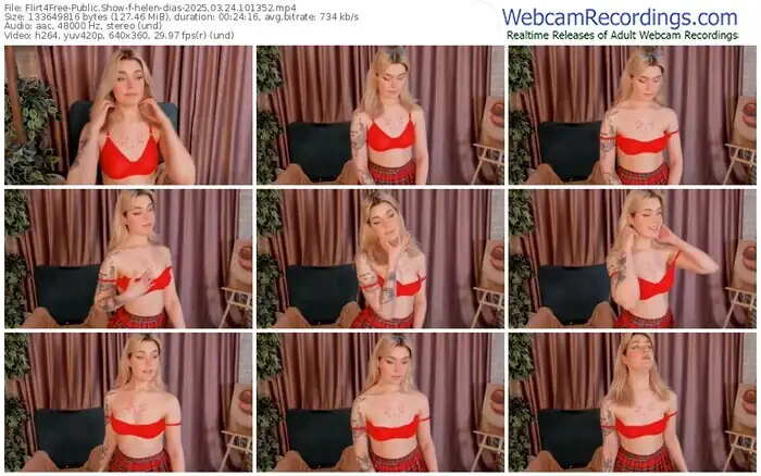 There are a total of 898 recordings (529 hours) of helen-dias from Flirt4Free available below.