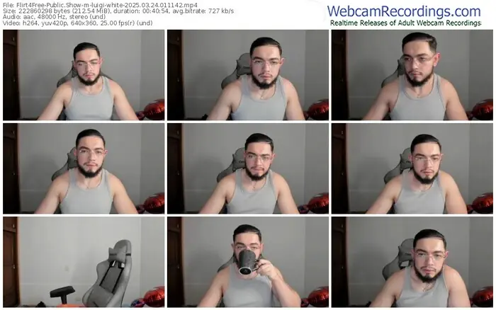 There are a total of 2,970 recordings (2,675 hours) of luigi-white from Flirt4Free available below.