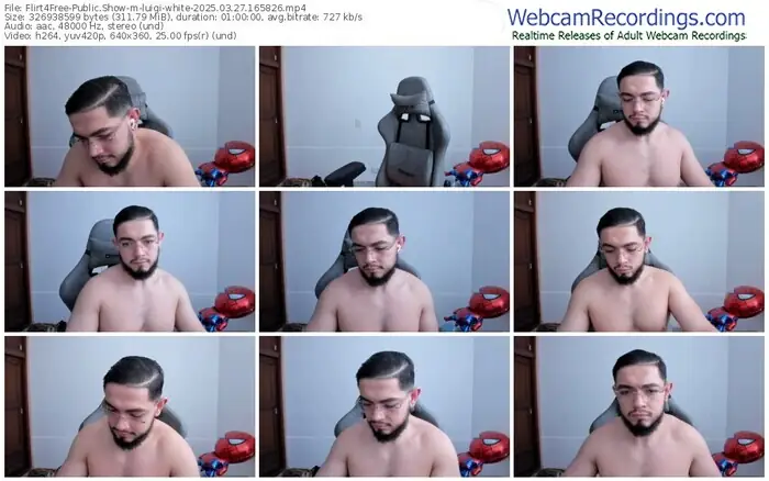 There are a total of 2,966 recordings (2,671 hours) of luigi-white from Flirt4Free available below.