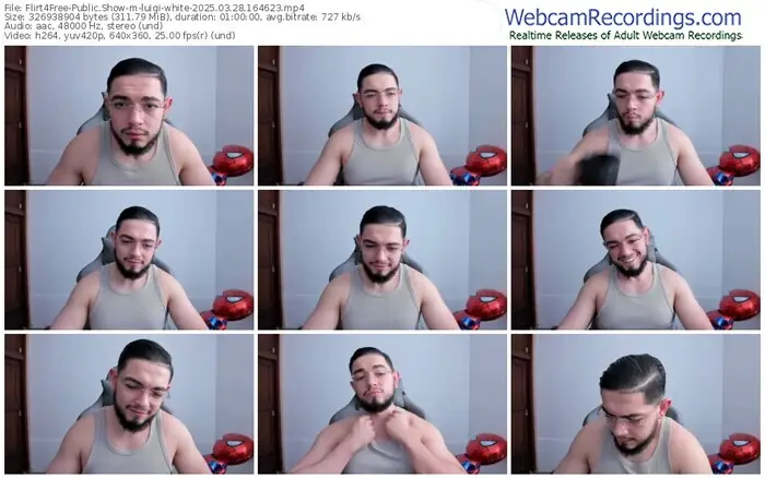 There are a total of 2,970 recordings (2,675 hours) of luigi-white from Flirt4Free available below.
