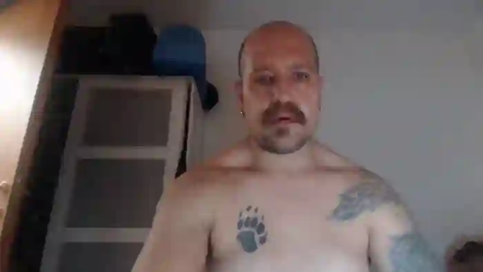 His birthday is October 15th 1980 making him 44 years old, and the average age of models on Flirt4Free is 25—making him one of the older models. His height is 173cm, and his weight is 82kg. He identifies his ethnicity as mixed. He has a natural pubic hair, average body with blue eyes and short bald hair.His body art includes tattoo(s).