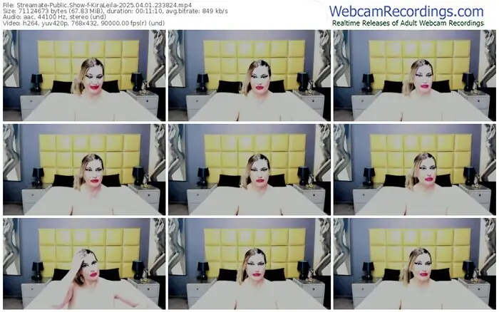 There are a total of 3,706 recordings (1,266 hours) of KiraLeila from Streamate and Stripchat available below.
