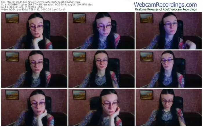 There are a total of 5 recordings (46 minutes) of Vermilia25 from Streamate available below.