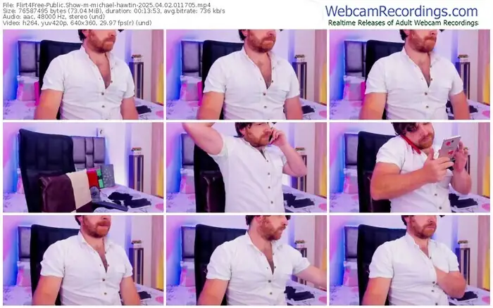 There are a total of 1,597 recordings (1,078 hours) of michael-hawtin from Flirt4Free available below.