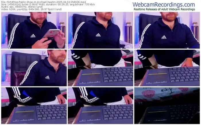 There are a total of 1,597 recordings (1,078 hours) of michael-hawtin from Flirt4Free available below.