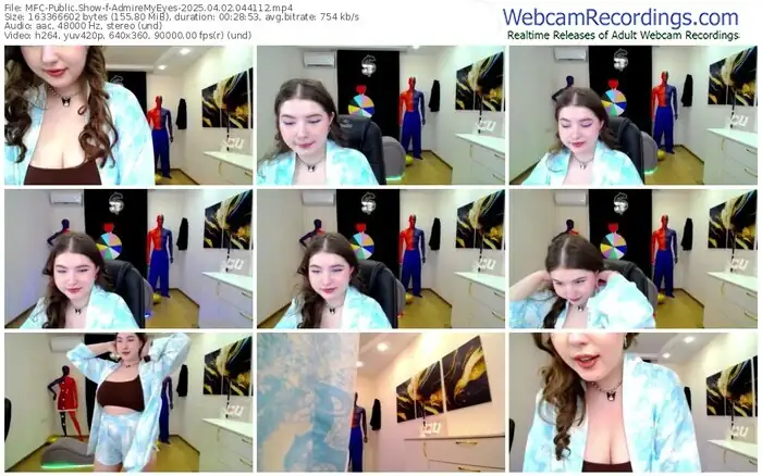 There are a total of 1,998 recordings (690 hours) of AdmireMyEyes from MyFreeCams available below.