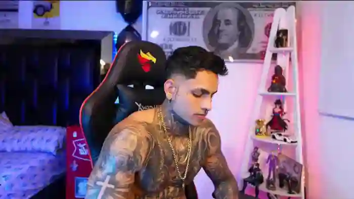 His birthday is August 28th 1998 making him 27 years old, and the average age of models on Flirt4Free is 25—making him one of the older models. His height is 178cm, and his weight is 75kg. He identifies his ethnicity as mixed. He has a natural pubic hair, muscular body with brown eyes and short brown hair.His body art includes piercings, tattoo(s).
