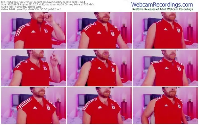 There are a total of 1,597 recordings (1,078 hours) of michael-hawtin from Flirt4Free available below.