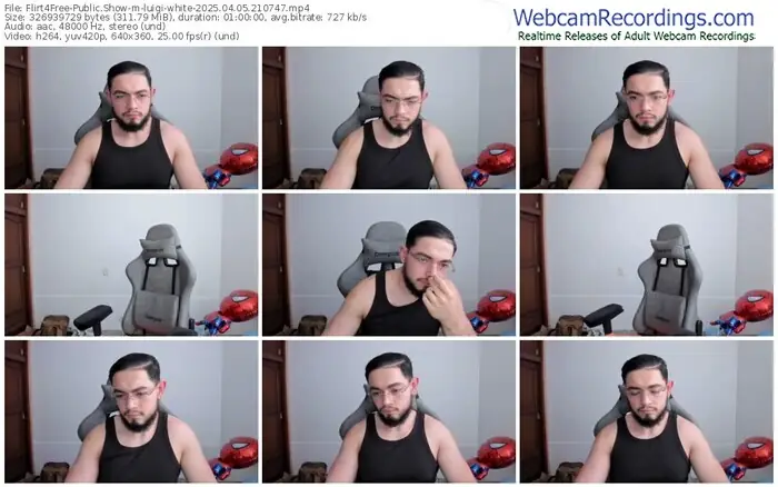 There are a total of 2,966 recordings (2,671 hours) of luigi-white from Flirt4Free available below.