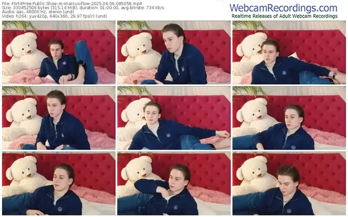 There are a total of 440 recordings (288 hours) of marcus-flow from Flirt4Free available below.