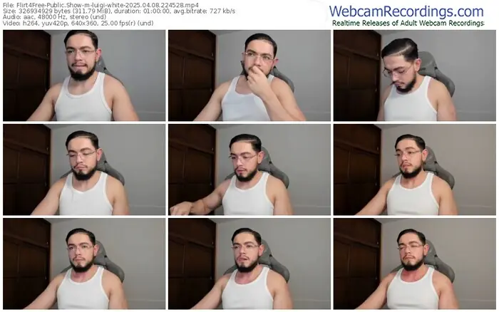 There are a total of 2,970 recordings (2,675 hours) of luigi-white from Flirt4Free available below.