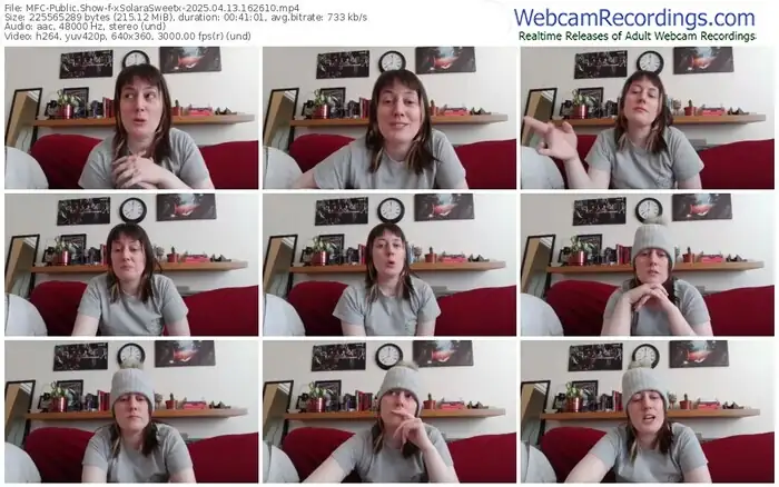 There are a total of 215 recordings (125 hours) of xSolaraSweetx from MyFreeCams available below.