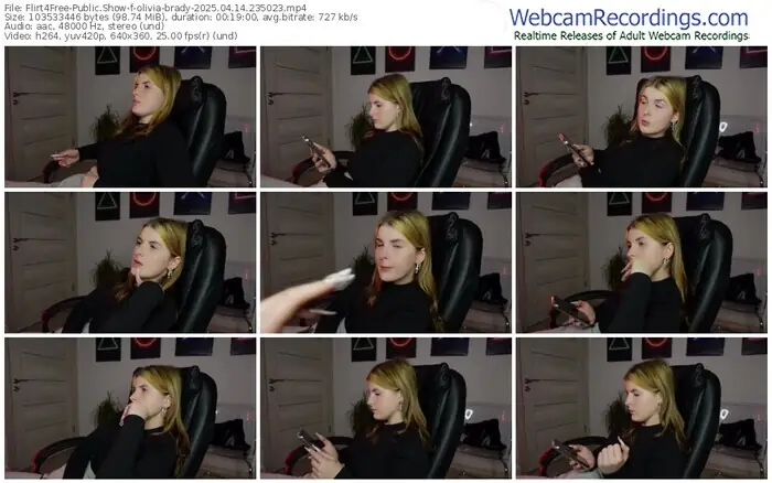 There are a total of 6 recordings (5 hours) of olivia-brady from Flirt4Free available below.