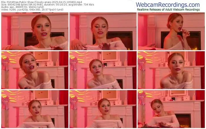 There are a total of 744 recordings (404 hours) of lovely-anais from Flirt4Free available below.