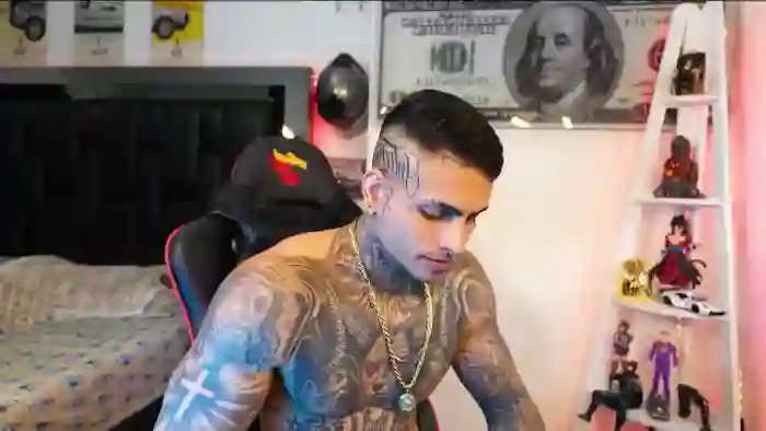 His birthday is August 28th 1998 making him 27 years old, and the average age of models on Flirt4Free is 25—making him one of the older models. His height is 178cm, and his weight is 75kg. He identifies his ethnicity as mixed. He has a natural pubic hair, muscular body with brown eyes and short brown hair.His body art includes piercings, tattoo(s).