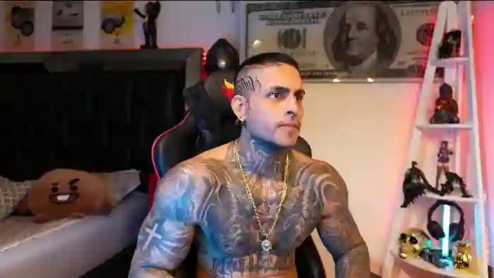 His birthday is August 28th 1998 making him 27 years old, and the average age of models on Flirt4Free is 25—making him one of the older models. His height is 178cm, and his weight is 75kg. He identifies his ethnicity as mixed. He has a natural pubic hair, muscular body with brown eyes and short brown hair.His body art includes piercings, tattoo(s).