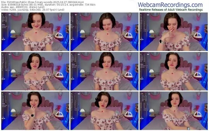 There are a total of 1,279 recordings (666 hours) of mary-woods from Flirt4Free available below.