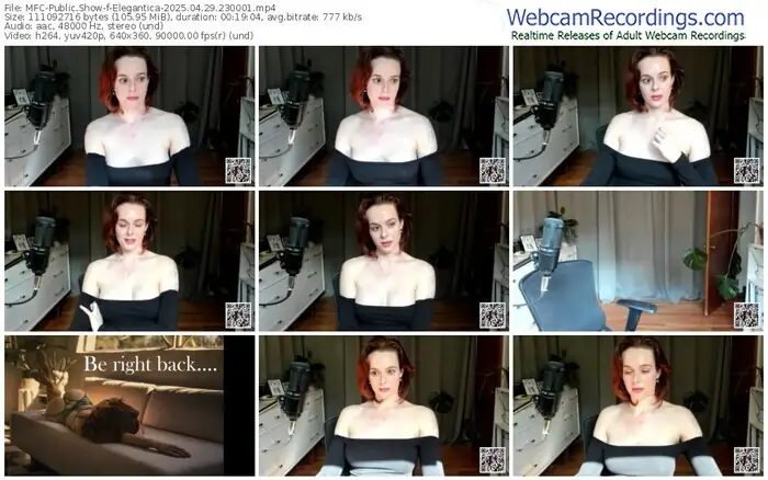 There are a total of 26 recordings (16 hours) of Elegantica from MyFreeCams available below.