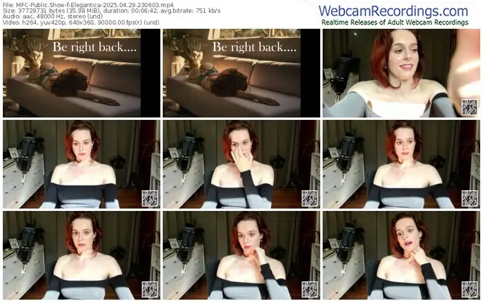 There are a total of 26 recordings (16 hours) of Elegantica from MyFreeCams available below.