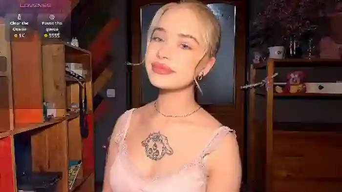 Her birthday is March 25th 2006 making her 19 years old, and the average age of models on Flirt4Free is 25—making her one of the younger models. Her height is 160cm, and her weight is 48kg. She identifies her ethnicity as mixed. She has a shaved pubic hair, and c cup breasts on a slim body with blue eyes and shoulder blonde hair.Her body art includes piercings, tattoo(s).