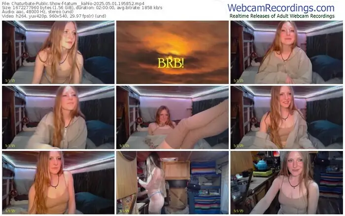 There are a total of 22 recordings (25 hours) of tatum__kahlo from Chaturbate available below.