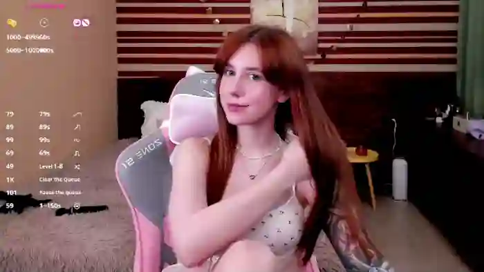 Her birthday is March 27th 2003 making her 22 years old, and the average age of models on Flirt4Free is 25—making her one of the younger models. Her height is 162cm, and her weight is 48kg. She identifies her ethnicity as caucasian. She has a shaved pubic hair, and c cup breasts on a slim body with blue eyes and long red hair.Her body art includes piercings, tattoo(s), fake breasts.