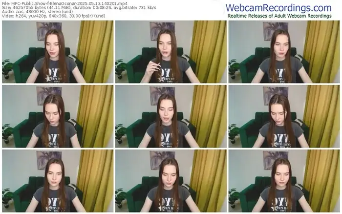 There are a total of 61 recordings (25 hours) of ElenaOconar from MyFreeCams available below.