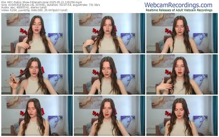 There are a total of 61 recordings (25 hours) of ElenaOconar from MyFreeCams available below.