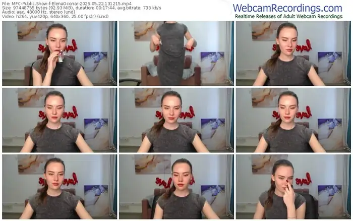 There are a total of 61 recordings (25 hours) of ElenaOconar from MyFreeCams available below.