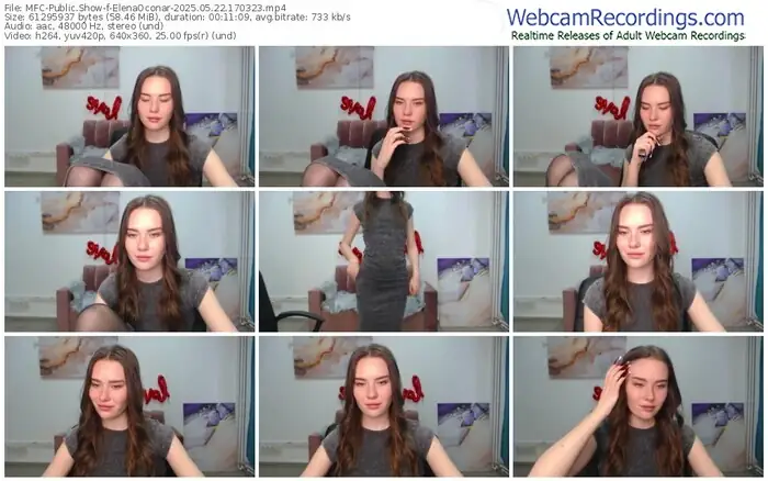 There are a total of 61 recordings (25 hours) of ElenaOconar from MyFreeCams available below.