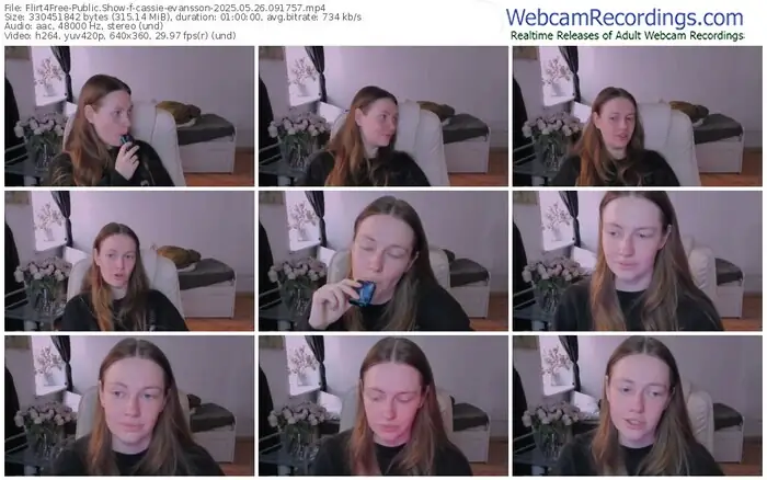 There are a total of 140 recordings (63 hours) of cassie-evansson from Flirt4Free available below.
