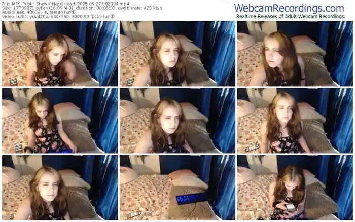 There are a total of 22 recordings (10 hours) of HazelHeart from MyFreeCams available below.