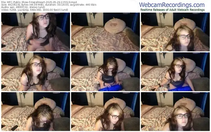 There are a total of 22 recordings (10 hours) of HazelHeart from MyFreeCams available below.