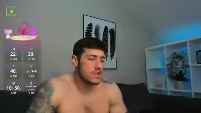 His birthday is April 21st 1997 making him 28 years old, and the average age of models on Flirt4Free is 25—making him one of the older models. His height is 180cm, and his weight is 85kg. He identifies his ethnicity as caucasian. He has a trimmed pubic hair, muscular body with green eyes and short black hair.His body art includes tattoo(s).