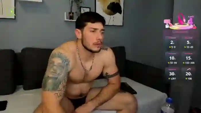 His birthday is April 21st 1997 making him 28 years old, and the average age of models on Flirt4Free is 25—making him one of the older models. His height is 180cm, and his weight is 85kg. He identifies his ethnicity as caucasian. He has a trimmed pubic hair, muscular body with green eyes and short black hair.His body art includes tattoo(s).