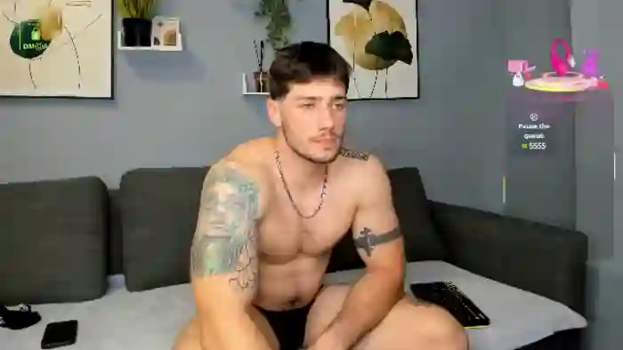 His birthday is April 21st 1997 making him 28 years old, and the average age of models on Flirt4Free is 25—making him one of the older models. His height is 180cm, and his weight is 85kg. He identifies his ethnicity as caucasian. He has a trimmed pubic hair, muscular body with green eyes and short black hair.His body art includes tattoo(s).