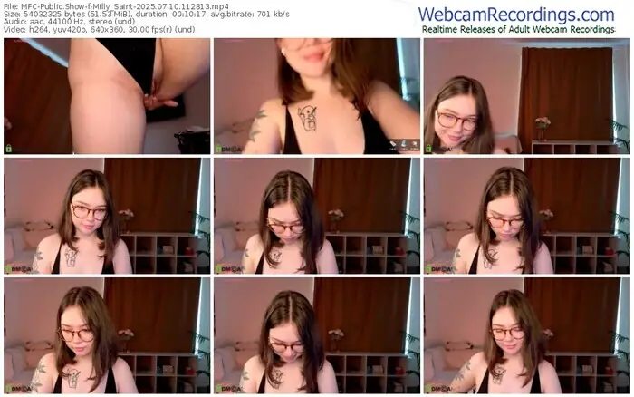There are a total of 2,213 recordings (1,300 hours) of Milly_Saint from MyFreeCams and MV_Live available below.